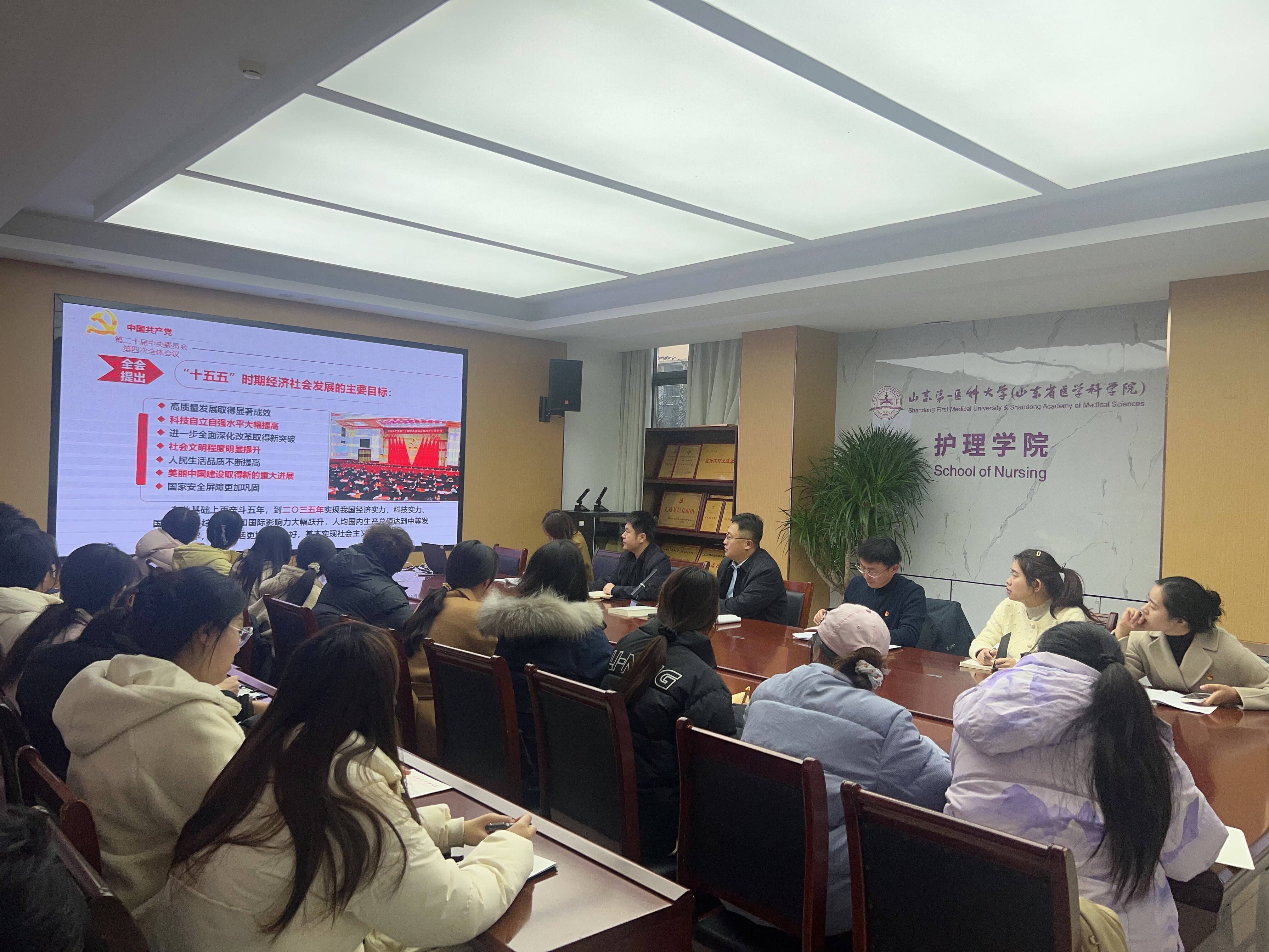 12月10日下午,校(院)党委委员、第一附属医院(省千佛山医院)党委书记孙志坚为护理学院师生宣讲党的二十届四中全会精神。 孙志坚围绕学习贯彻习近平总书记在党的二十届四中全会上的重要讲话精神和全会《建议》,从党的二十届四中全会的核心要义、“十四五”时期取得的历史性成就、“十五五”规划编制的重大意义、全会擘画的宏伟蓝图、贯彻落实全会精神的实践路径等方面,对全会精神作了系统宣讲和深入阐释。他指出,党的二...