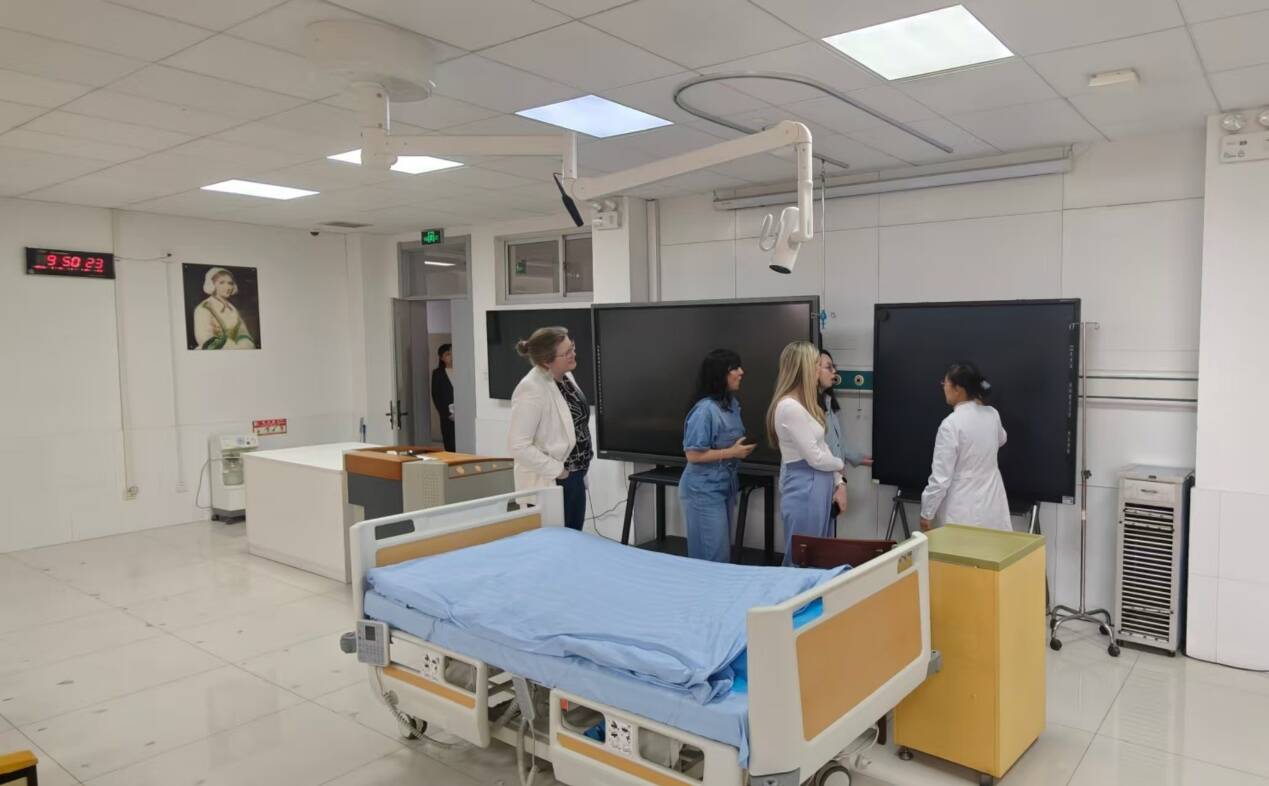 代表团参观了护理学院实验中心,深入了解学院实验平台建设、实践教学条件以及课程开展情况。交流过程中,代表团成员对学院系统化、规范化的实践教学体系给予高度评价。