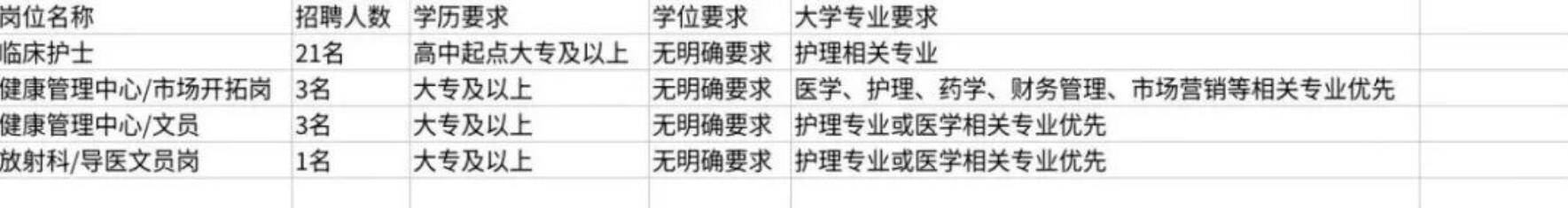 职位描述:1、护理学专业 2、大专以上