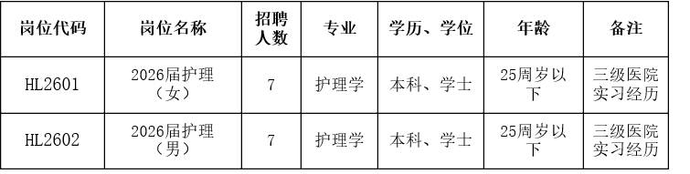 职位描述: 1、护理专业,具有护士执业证书 2、本科及以上学历 3、英语4级证书