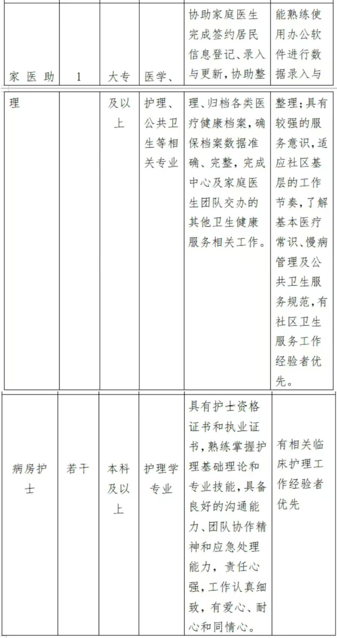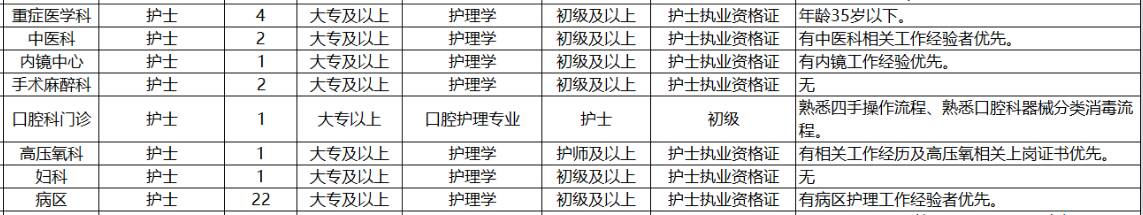 职位描述:1、护理学系及其相关专业 2、专科及以上
