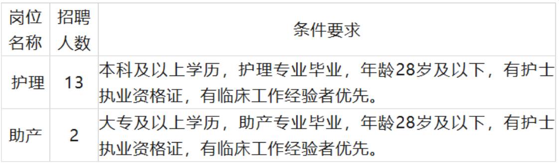 招聘人数:护理:13人助产2人