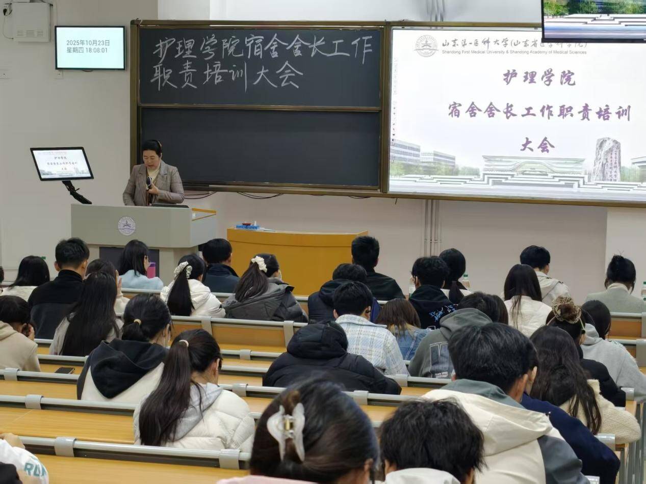 为进一步明确宿舍舍长工作职责,提升宿舍管理效能,营造安全文明和谐的住宿环境,10月23日晚,护理学院开展宿舍长培训,全体辅导员老师和学院全体宿舍舍长参加培训。