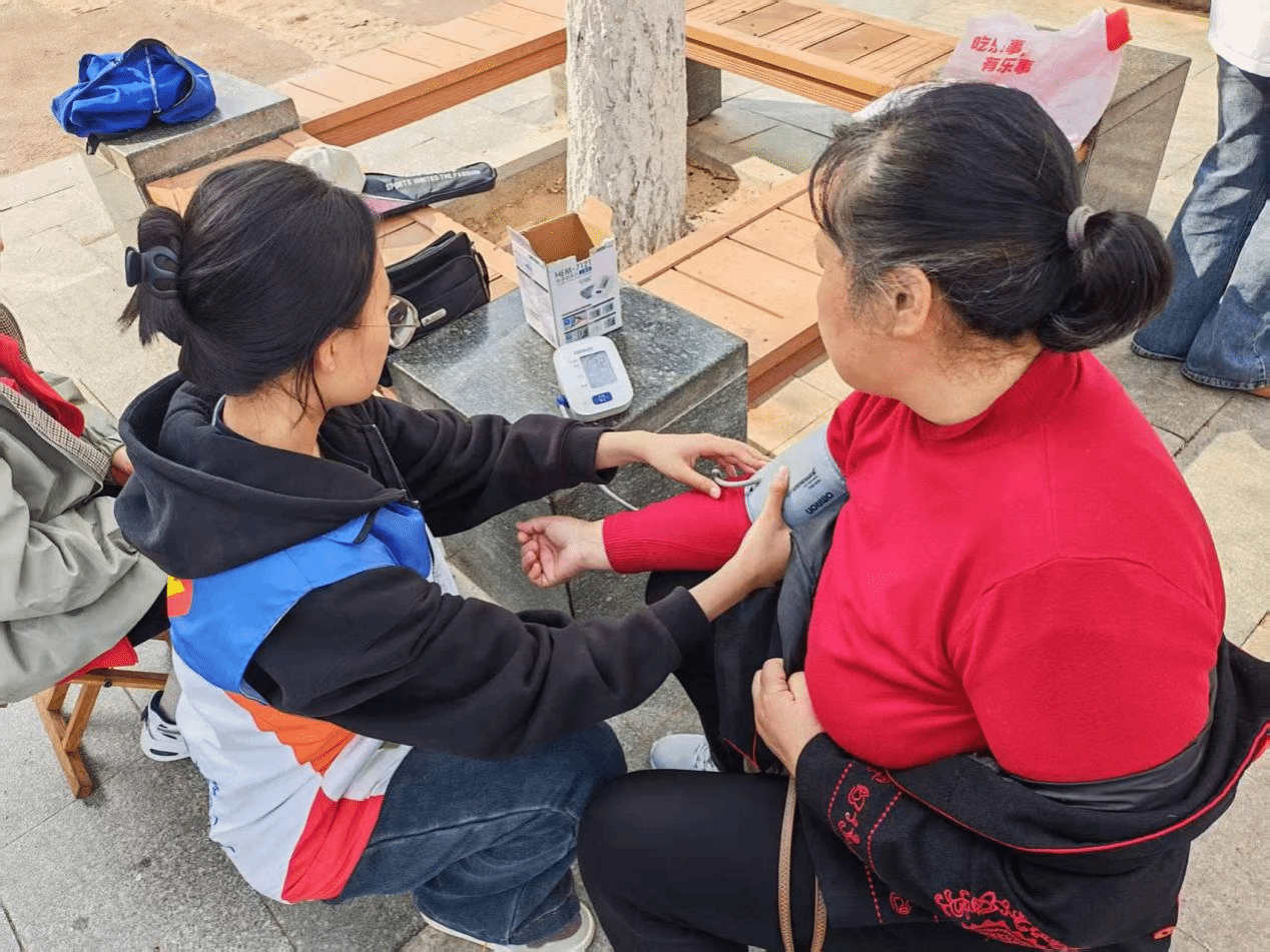 活动现场,队员们为居民测量血压、血糖,根据测量结果提供个性化的健康管理建议。同时,队员们积极开展健康科普,把专业内容转化为易懂的生活常识,有效提升了居民健康素养与自我防护能力。