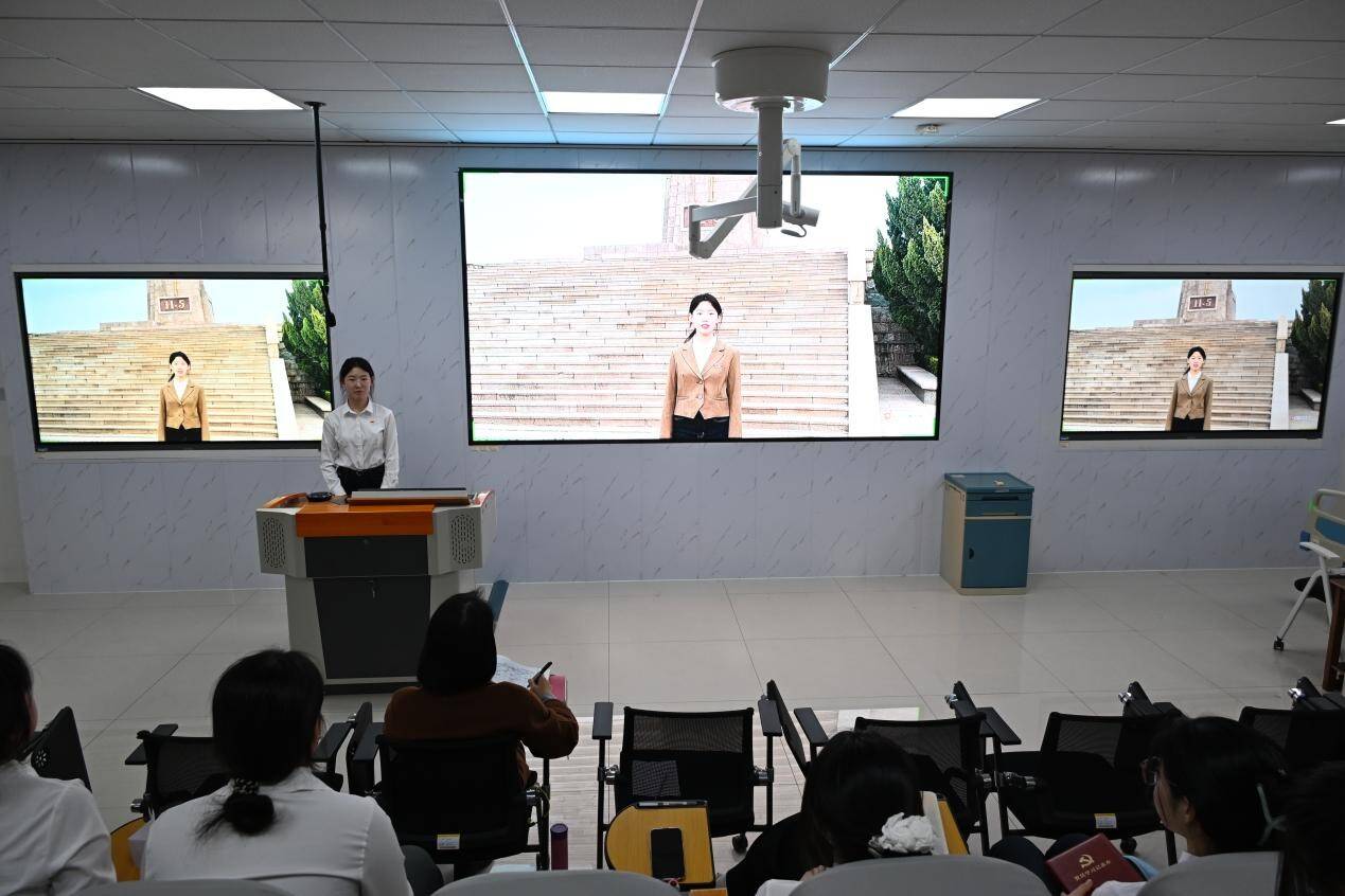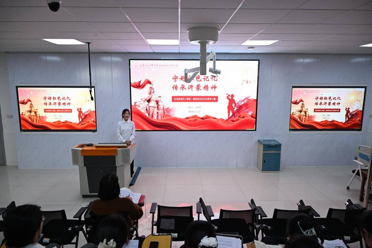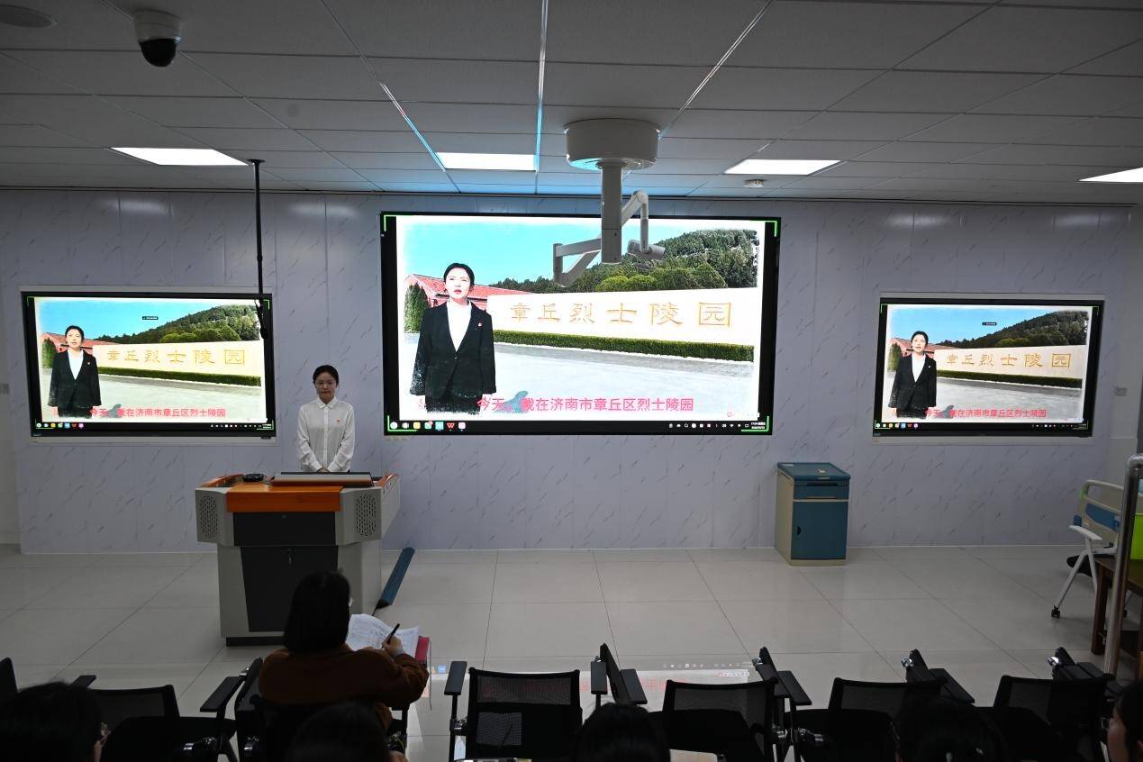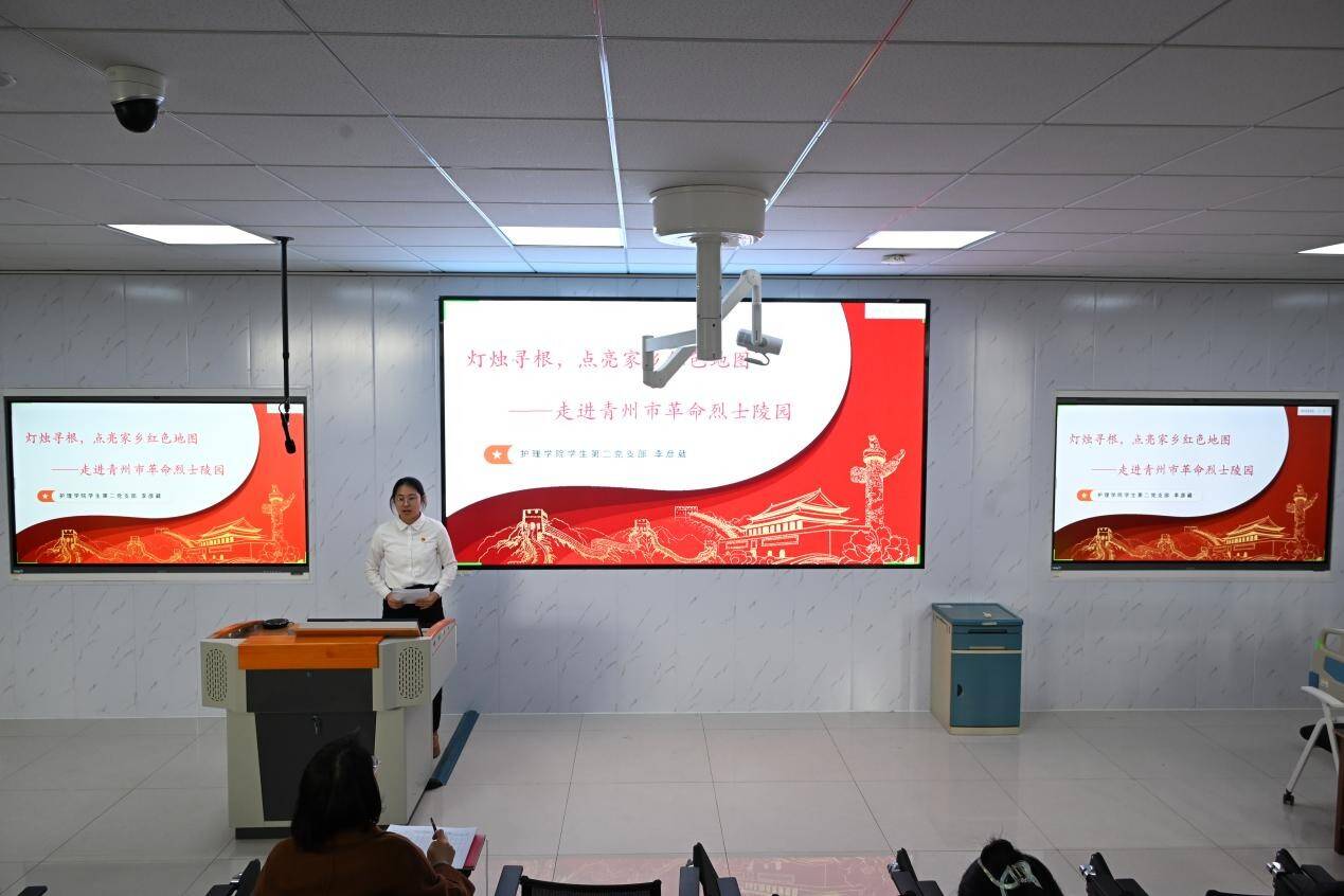 活动现场,学生党员依次上台展示。从济南解放阁、华东革命烈士陵园、周恩来纪念馆,到冯德英文学馆、青州市烈士陵园……一段段讲述将历史与现实相连。有的同学回顾重大革命事件,解读历史转折点中的信仰力量;有的同学讲述家风传承故事,分享红色基因如何在家庭中代代相传。现场师生跟随着党员的足迹,共同感受那段峥嵘岁月中凝结的家国情怀。这场汇报展示,不仅是实践成果的交流,更是一堂触及灵魂的“大思政课”,让红色文化在讲述与聆听中入脑入心