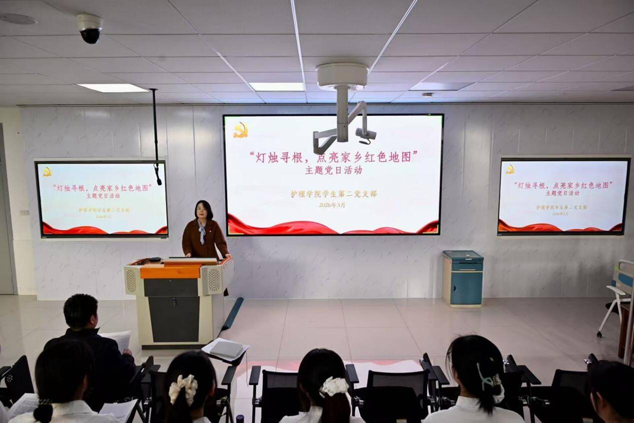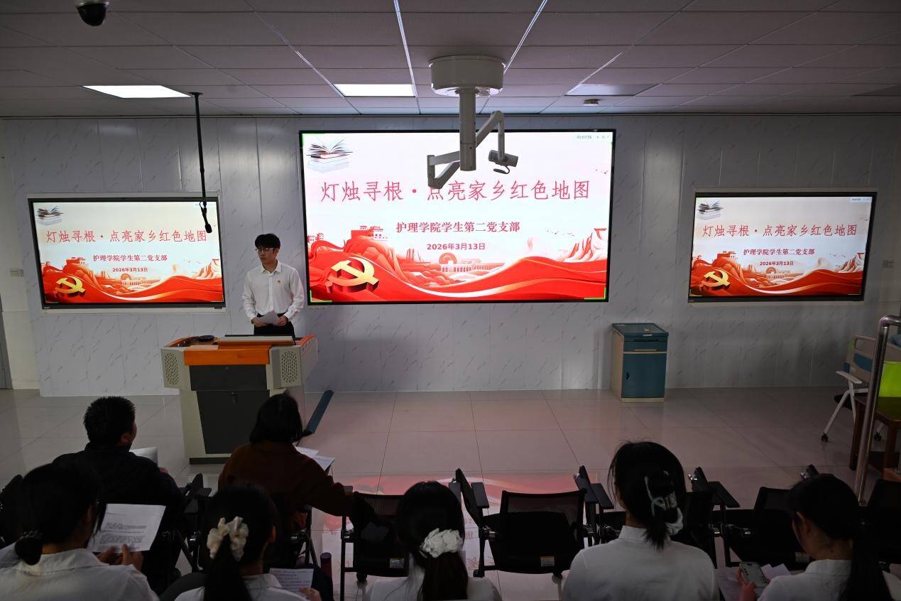 近日,护理学院学生第二党支部开展“灯烛寻根·点亮家乡红色地图”主题党日活动。支部党员围绕寒假期间走访家乡红色旧址、追寻革命足迹的实践成果,进行集中汇报展示,将社会实践转化为一堂生动的“大思政课”。
