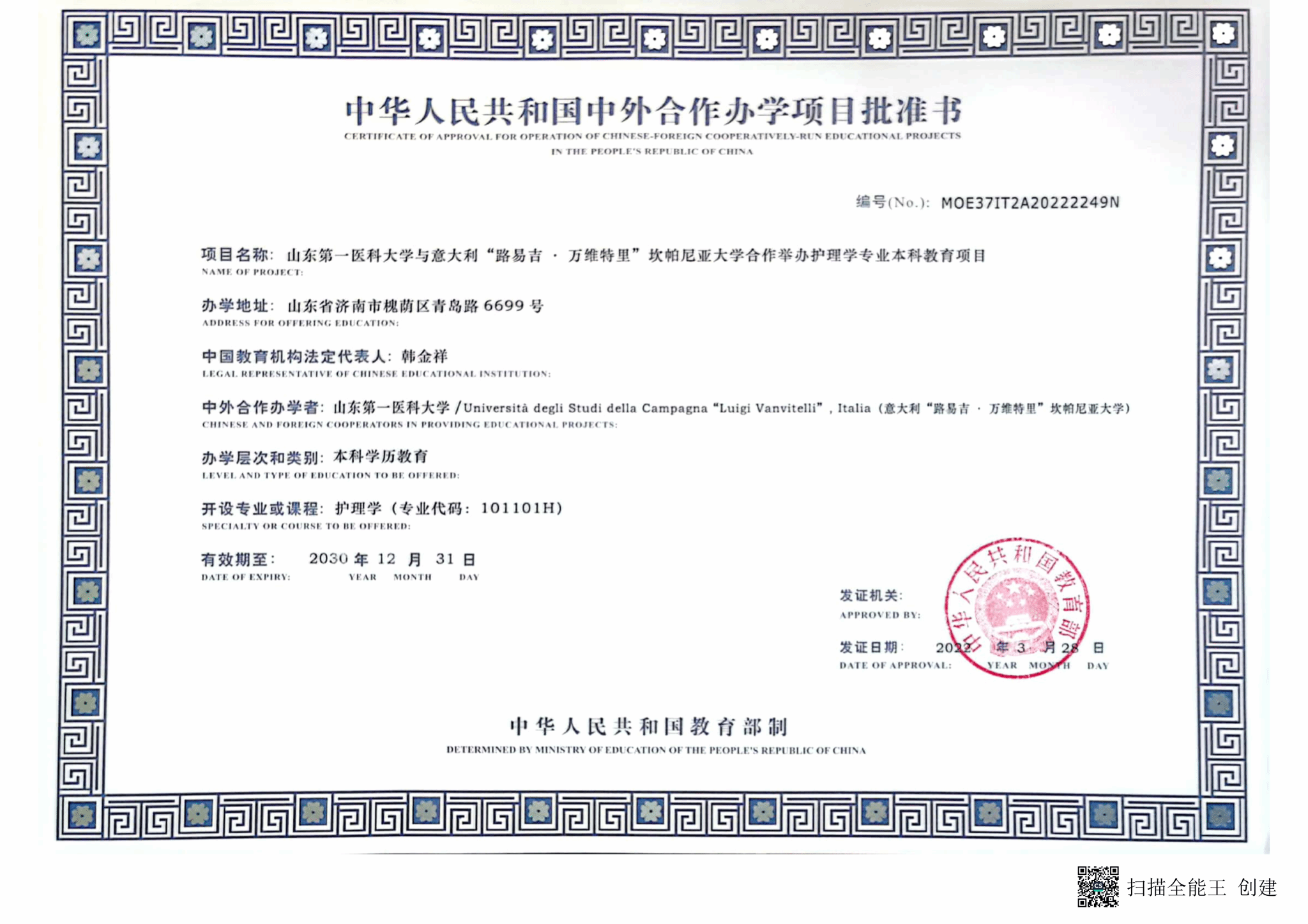 2022年,我校与意大利“路易吉·万维特里”坎帕尼亚大学合作培养护理学专业本科教育项目获得教育部批准,正式纳入中华人民共和国国家统招计划。